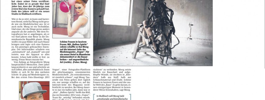 Mit diesem Artikel hat die „Rheinpfalz“-Zeitung im Juni 2014 in ihrem „Kultur Regional“-Teil Haßloch / Neustadt a.d. Weinstraße über meine Arbeit als Fotograf berichtet – darüber wer ich bin, welche Ziele ich verfolge, meine geplante Fotostudio Neueröffnung und was ich im Rahmen meiner Fotografie, nicht nur in der Region Neustadt a.d. Weinstraße, bisher erreichen konnte.